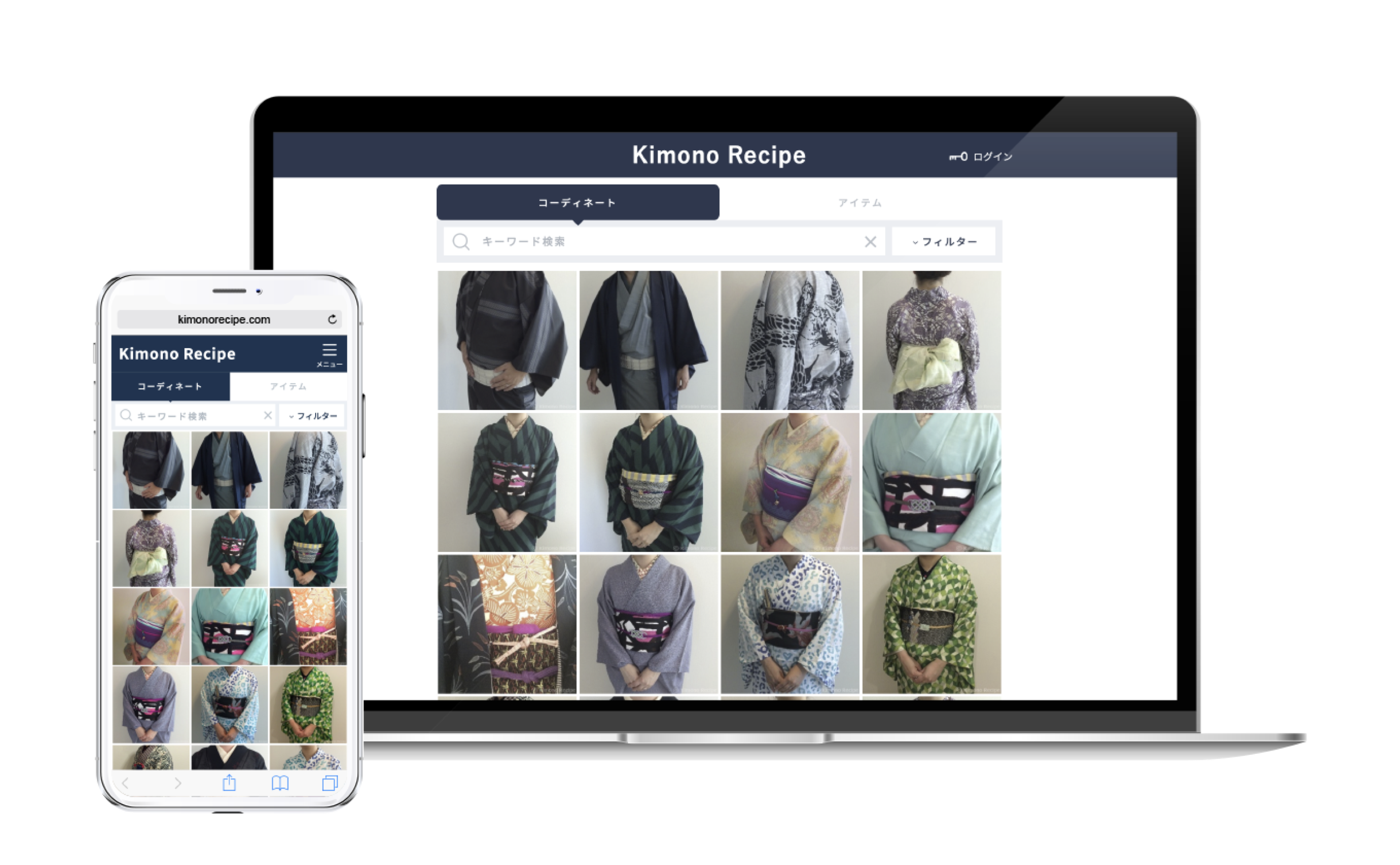 「きものレシピ」は、着物愛好家のために特化したコーディネート管理サービスです。このプラットフォームを利用することで、所有している着物や帯、小物などのアイテムを写真とともに整理・管理できます。また、コーディネートの記録や、他のユーザーとの情報共有も可能です。
